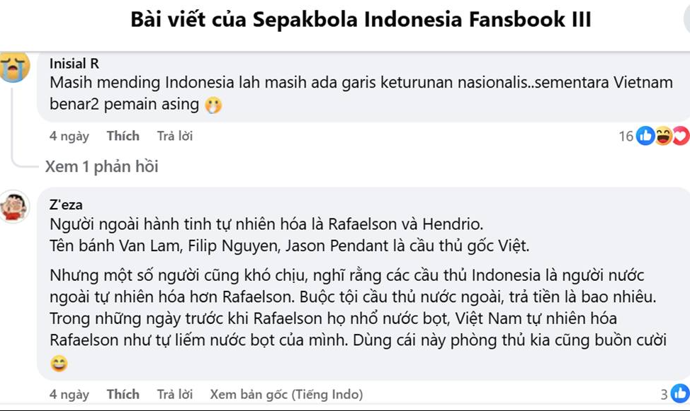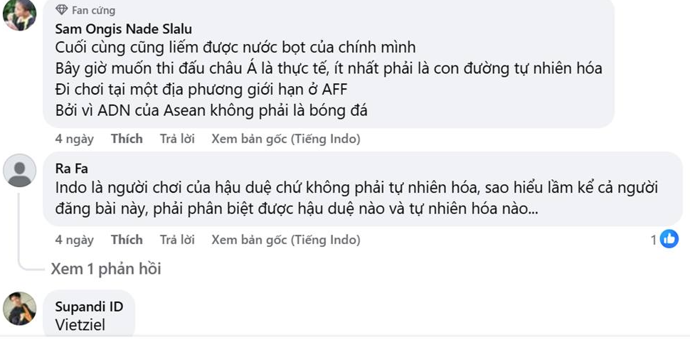 Dạo này lướt comment trên một số page thấy fan Indo bắt đầu “cà khịa”: